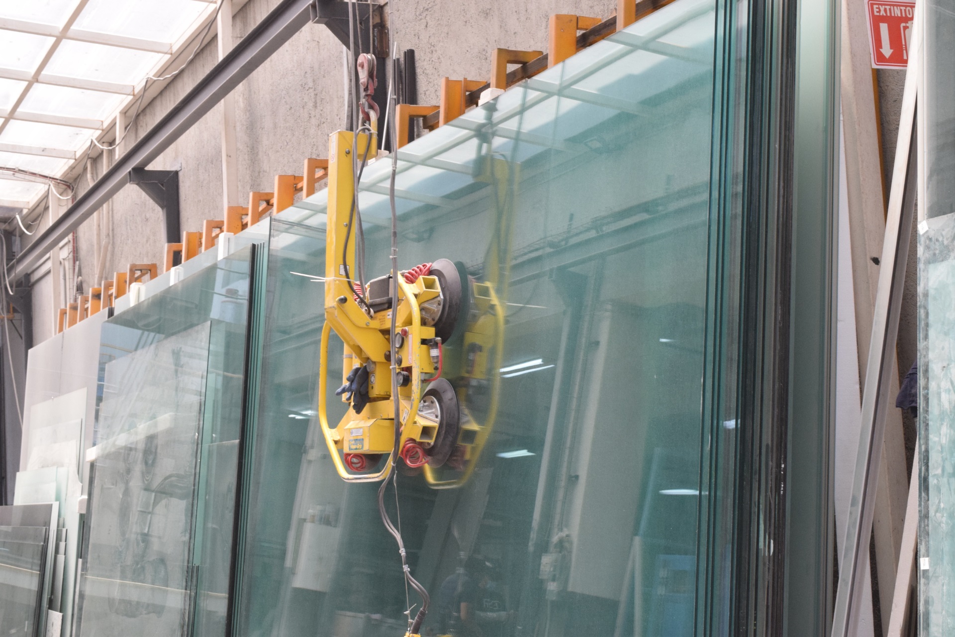 Una grúa para vidrio permite levantar y mover hojas de gran formato con ventosas de vacío, facilitando su instalación segura y precisa en proyectos arquitectónicos. Mejora la eficiencia y reduce riesgos laborales.